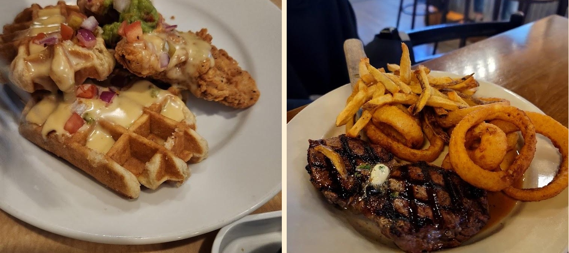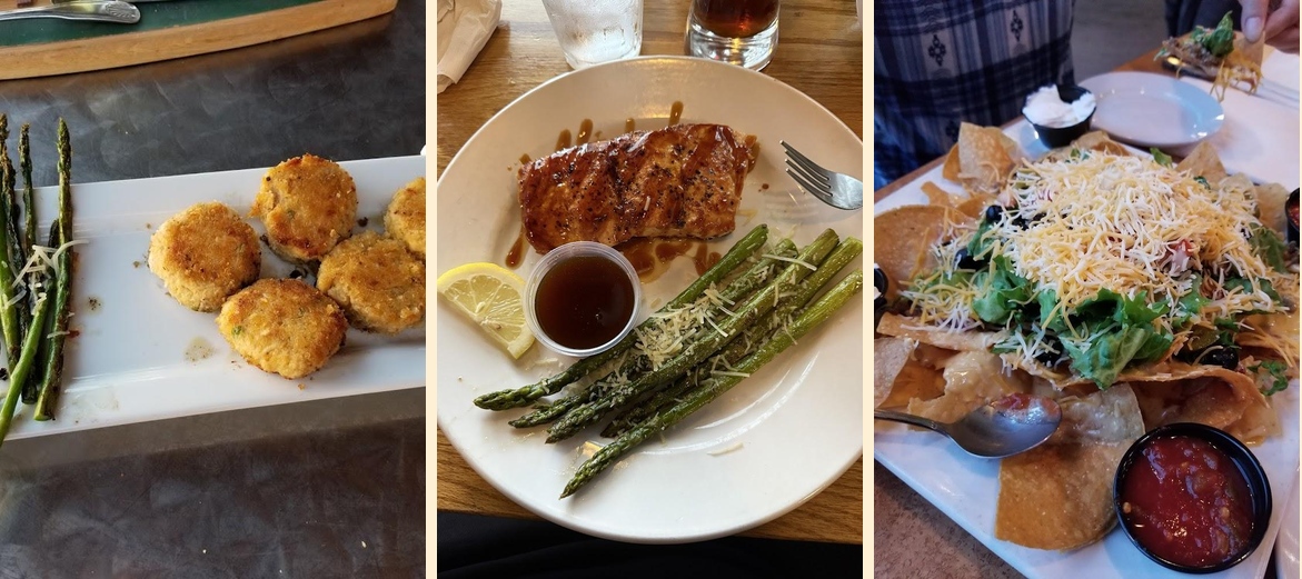 Rails Craft Brew & Eatery offers a variety of American dishes. Enjoy burgers, wraps, steaks, salads, and more. Vegetarian options include house-made veggie burgers and a delicious Salmon Spinach Berry Salad.