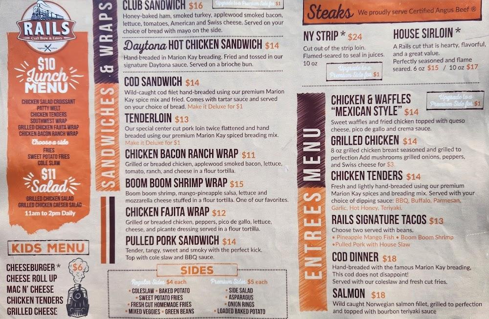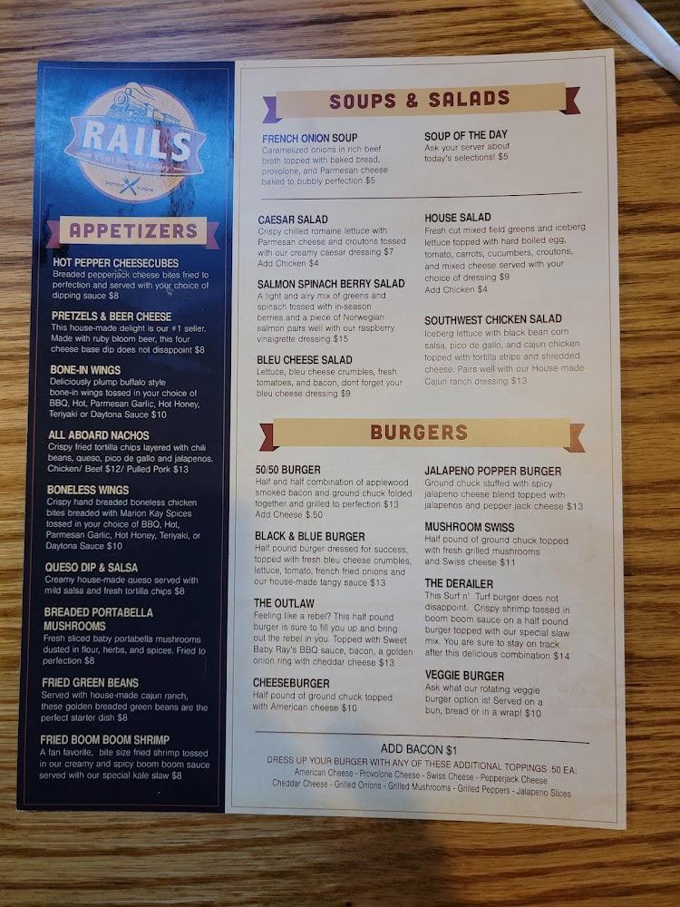 Rails Craft Brew & Eatery offers a wide-ranging menu with something for everyone. The focus is on classic American dishes with a local twist. Enjoy appetizers like Pretzel & Beer Cheese or Bone-In Wings to start your meal.